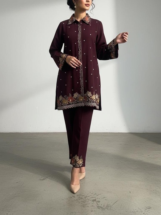 Women Maroon Full Sleeve Cords Set